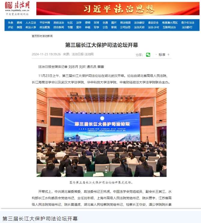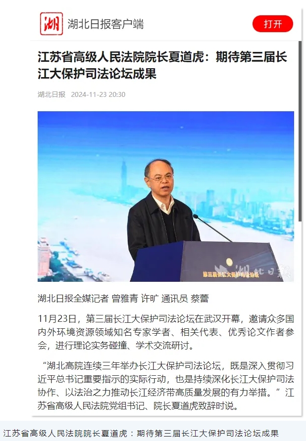 湖北省高级人民法院深入学习贯彻落实习近平总书记重要指示精神和习近平法治思想、习近平生态文明思想,以及省委、省政府部署,着眼凝聚长江流域法治共同体力量,坚决扛起长江生态保护政治责任,以最严格制度、最严密法治推动《长江保护法》深入实施,在中国法学会环境资源法学研究会指导下,会同长江海商法学会、武汉大学、华中科技大学、中南财经政法大学、人民法院环境资源审判理论研究(武汉大学)基地,于2022年创办了长江大保护司法论坛,携手长江流域有关单位和长江司法保护共同体,共商长江大保护大计,达成了《长江司法保护武汉共识》《加强长江流域生物多样性司法保护倡议书》等重要成果,长江大保护司法论坛已经初步成长为一个立足长江流域、面向全国、连接世界的常态化国际化交流平台。