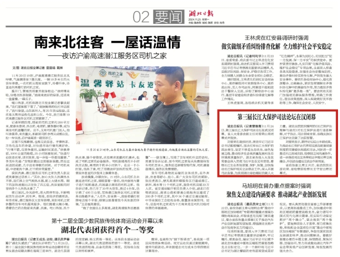 湖北省委、省政府认真学习贯彻习近平生态文明思想,以最大决心和魄力推进长江大保护工作,将建设水安全国家战略保障区作为中部地区崛起重要战略支点的“五个功能定位”之一,部署实施《湖北省流域综合治理和统筹发展规划纲要》,织密荆楚安澜水网、完善五级河湖长体系、推进小流域综合治理、健全绿色低碳发展机制,构建现代化流域综合治理体系,长江水生生物资源呈现恢复向好态势,再现了“水清岸绿、江豚逐浪”的美好景象。