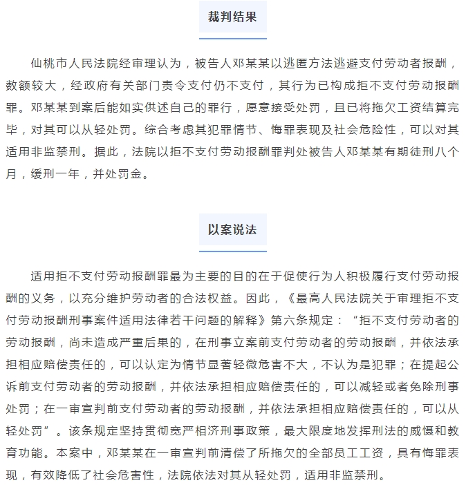 湖北省高级人民法院发布拒不支付劳动报酬犯罪典型案例