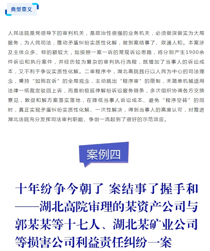 为充分发挥典型案(事)例的示范引导作用,湖北省法院选取了全省法院范围内的十起优化法治化营商环境典型案(事)例(2件事例,8件案例)予以发布,旨在以点滴之力汇聚磅礴之势,以期为谱写中国式现代化湖北篇章贡献源源司法力量。